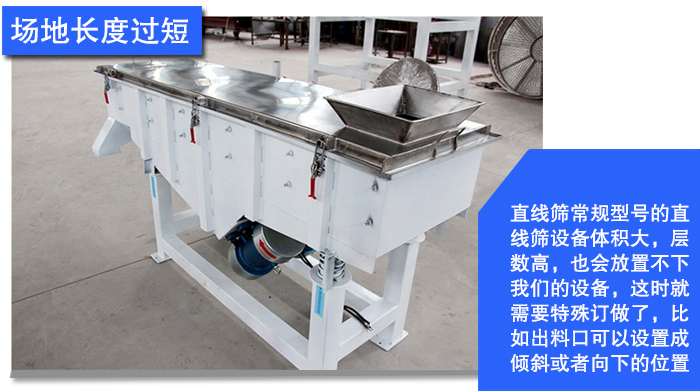 由于夜色直播APP盒子下载由于其工作原理性质物料在筛面上在激振力的作用下向前做抛物线式运动,夜色直播APP盒子下载筛面的设计充分利用了其筛网面积,如果遇到场地长度短,选择常规型号的夜色直播APP盒子下载是放不下的,由于咱们常规型号的夜色直播APP盒子下载设备体积大,层数高,也会放置不下夜色直播APP下载的设备,这时就需要特殊订做了,比如出料口可以设置成倾斜或者向下的位置。宽度做成1米长度80厘米等,具体可以可以根据您的需求而定。
